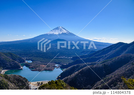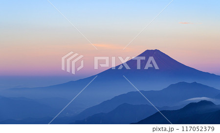 山梨県・早朝の雁ヶ腹摺山から見る富士山と山並み