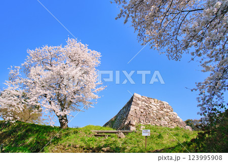 〈島根県〉月山富田城跡と桜 山中御殿跡の石垣