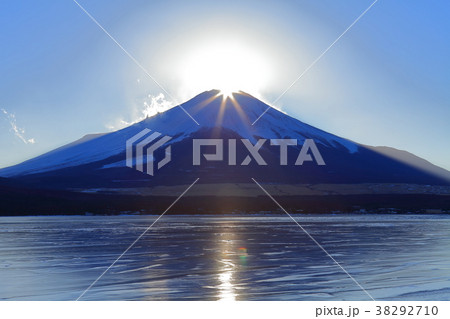 世界遺産 富士山 山中湖 冬 ダイヤモンド富士