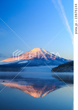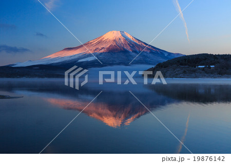 世界遺産 富士山 山梨県 山中湖 逆さ富士 冬