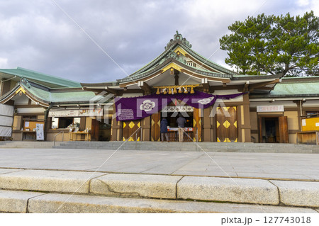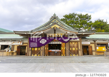 Shimonoseki, JAPAN - Dec 29,2022 : View of Kameyama Hachimangu shrine in Shimonoseki, Japan on Dec 29,2022.