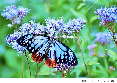海辺のフジバカマの花畑で蜜を吸う旅する蝶アサギマダラ