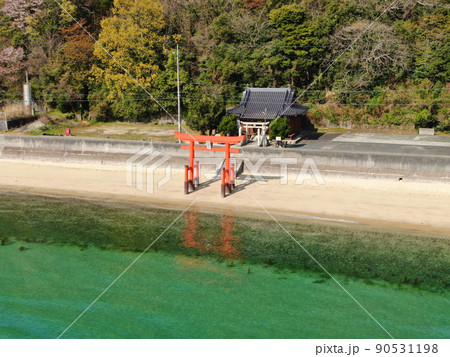 屋代島の小積の浜の厳島神社の鳥居の空撮