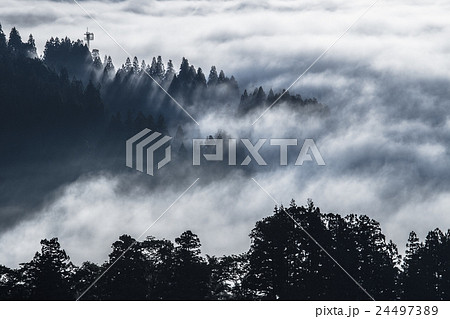 新潟県長岡市山古志 大雲海と光芒の森