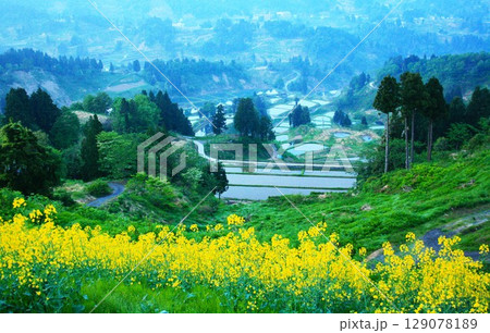 菜の花咲く山古志棚田の春