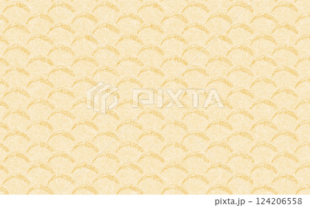 シームレスな和柄和紙のパターン。山吹色、稲穂青海波パターン。
