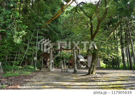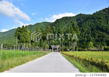 京都・京北町山国荘の山国神社の拝殿から見た鳥居