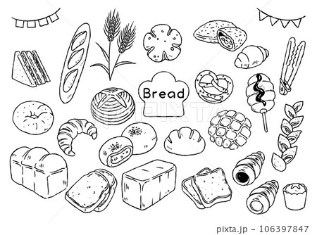手描き パン ベーカリー ブレッド イラストセット(チョークアート風)