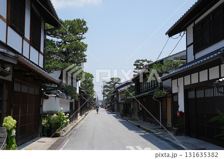 滋賀 近江八幡 近江商人の町並み(新町通り、南方向)(夏)