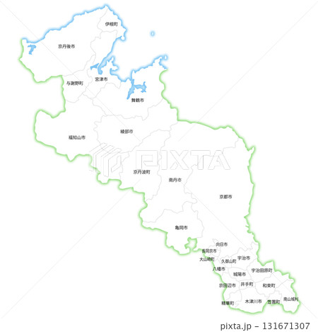 水彩で描いた、京都府の地図。日本の47都道府県の地図シリーズ