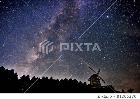 鏡山展望所の風車と天の川