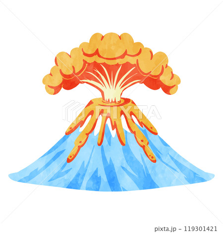 シンプルな富士山噴火の水彩イラスト