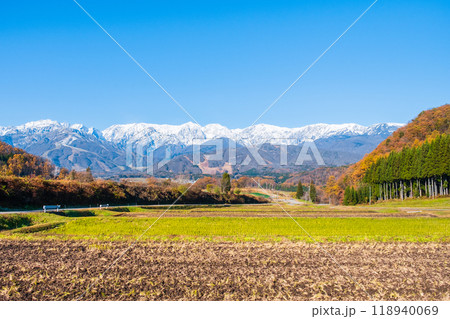 秋の立山黒部アルペンルート 紅葉の扇沢駅展望台からの眺望