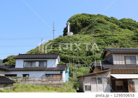 山形 鶴岡 高台から望む由良温泉街と白山島