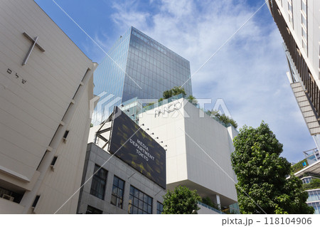日本の東京都市景観 渋谷パルコや東京山手教会など街並みを望む