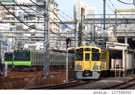 高田馬場駅で山手線と並ぶ西武新宿線旧2000系電車