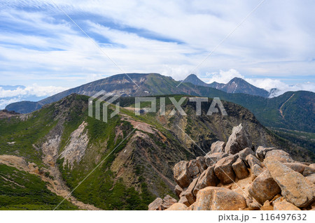 夏の八方白馬 登山道 夏の山岳風景素材