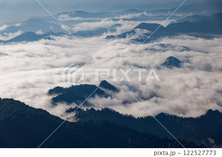 八ヶ岳連峰・三ツ頭から朝もやに浮かぶ甲武信岳