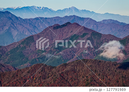 秋色の中央アルプス主稜線・縦走路を望む