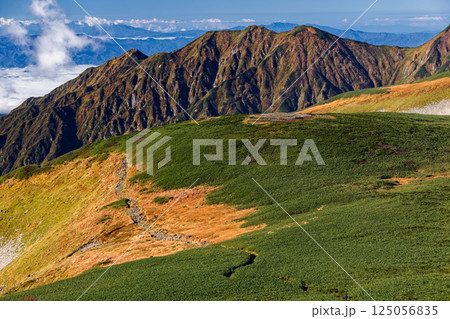 中央アルプス・千畳敷カールから見る富士山と南アルプス