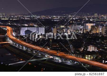 大阪府池田市五月山秀望台の夜景・阪神高速11号池田線新猪名川大橋ビッグハープのライトアップ