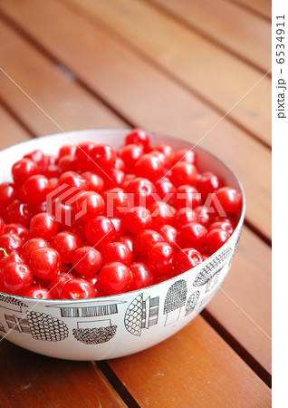 真っ赤な実 収穫した自家栽培のゆすらうめ