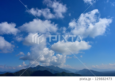 御坂山地のパノラマ台からの展望 青空に漂う白雲