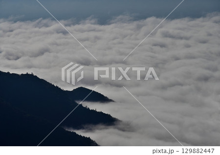 御坂山地の三方分山山頂より 霧に包まれた精進湖