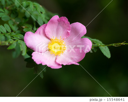 葉が山椒に似て自生しているサンショウバラの桃色の花・忍野村