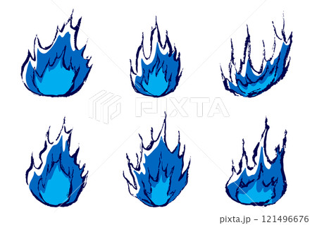 筆タッチの手描きの青い炎のイラストセット
