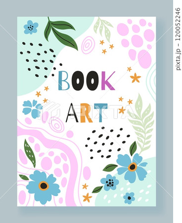 Boor art cover. Doodle leaves and flowers design, notebook or flyer, poster and postcard. Botanical elements isolated on white background. Childish banner. Memphis style frame. Vector illustration