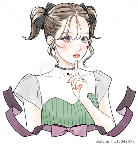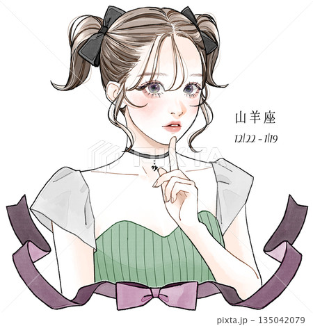 イラスト素材: 十二星座やぎ座の女性イメージ 擬人化/水彩画