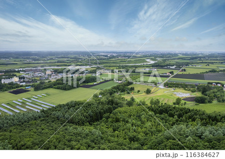 北海道 十勝平野 美蔓パノラマパークからの眺め(空撮)