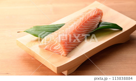 Sashimi, Sushi salmon & tuna sushi shrimp and wasabi on the wood table