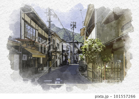 水彩画風 宮島 山辺の古径 広島県廿日市市
