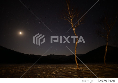 尾瀬の雪原と満天の星空