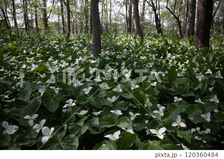 森を埋め尽くすオオバナエンレイソウ群