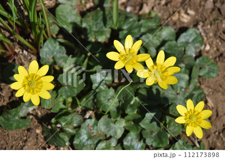 早春イメージ 晴れの日に咲く満開の福寿草 クローズアップ