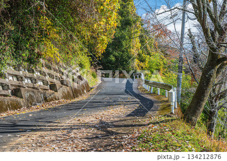 落ち葉積もる林道 切山中腹 京都府笠置町