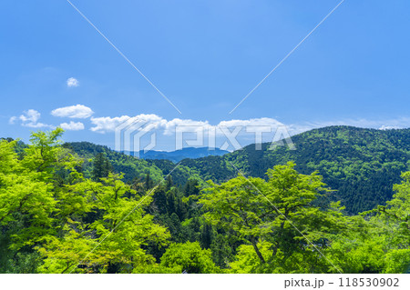 新緑の南紀の山並み 和歌山県東牟婁郡那智勝浦町