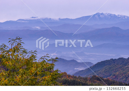 岐阜県岐阜市、岐阜公園三重塔と金華山ロープウェーの風景
