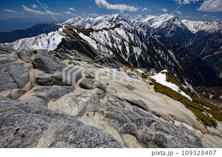 【登山素材】初夏の蝶ヶ岳山頂からの風景【長野県】