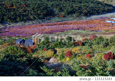 秋の草津白根山南麓の丘の風景