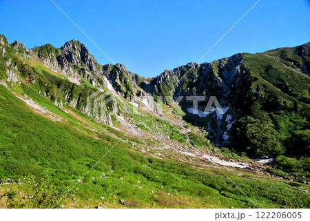 みくりが池温泉から見る雷鳥沢と別山乗越 北アルプス剱岳登山