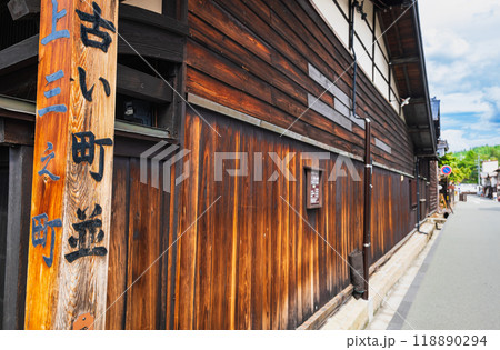 日本の飛騨高山の古い町並の風景