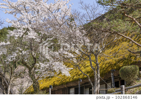 桜と茅葺民家(飛騨の里)