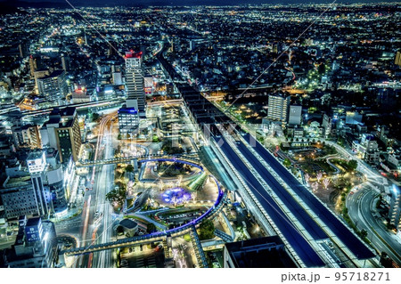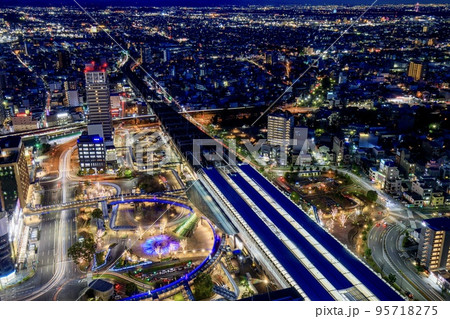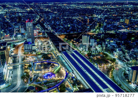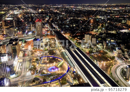 岐阜市 岐阜シティタワー43の最上階展望室から眺めた岐阜市内の夜景(岐阜駅方面)