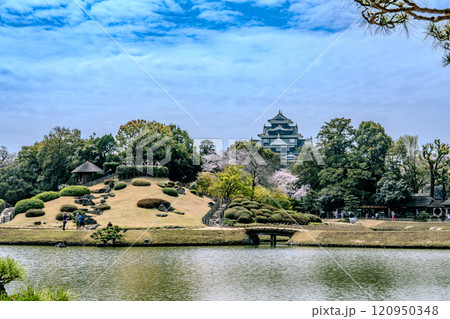 【日本三名園】特別名勝 後楽園の春 桜と芝生と岡山城2 岡山県岡山市北区