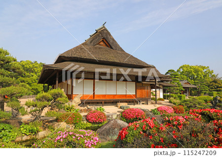 サツキ咲く頃の後楽園 延養亭