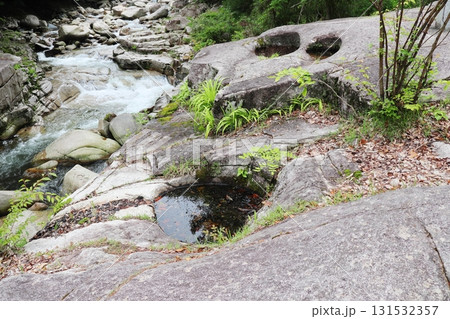 岡山県鏡野町の奥津渓谷 甌穴